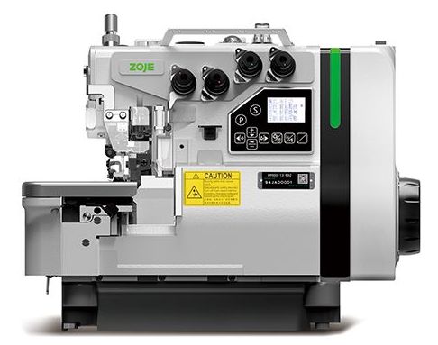 Пятиниточный оверлок для средних и тяжелых материалов с устройством сбора обрези, с прямым приводом и автоматическими функциями обрезки нитей и подъема лапки.